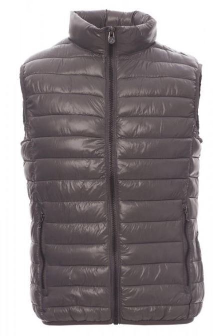 Gilet/doudoune homme à zip de 8 mm en plastique avec curseur en métal, fin liseré à la taille, deux poches extérieures. Intérieur : rembourrage polyester effet duvet, trois poches.