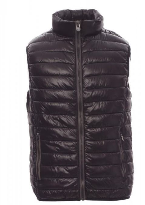 Gilet/doudoune homme à zip de 8 mm en plastique avec curseur en métal, fin liseré à la taille, deux poches extérieures. Intérieur : rembourrage polyester effet duvet, trois poches.