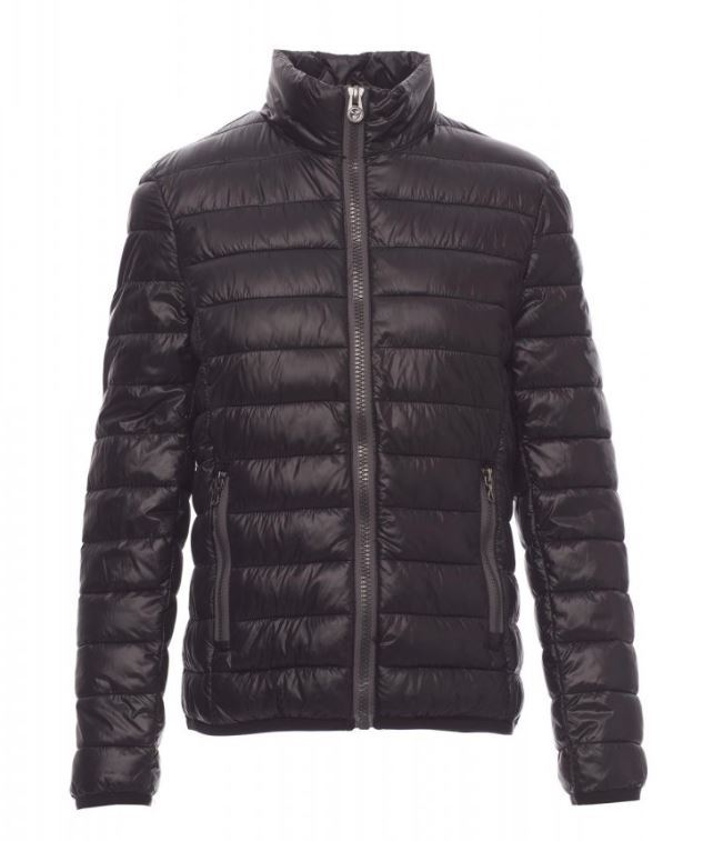 Blouson/doudoune ergonomique pour femme à zip de 8 mm en plastique avec curseur en métal, fin liseré aux poignets et à la taille, deux poches extérieures.