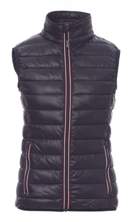 Gilet/doudoune femme, coupe ergonomique, à zip en nylon contrasté, fin liseré à la taille, deux poches extérieures. Intérieur : rembourrage polyester effet duvet, trois poches.