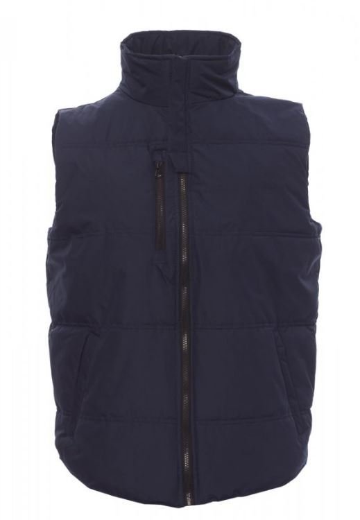 Gilet unisexe à fermeture éclair de 8 mm en plastique avec curseur en métal, deux poches latérales à fermeture éclair, une poche de poitrine. Intérieur: matelassé et en micropolaire à contraste.