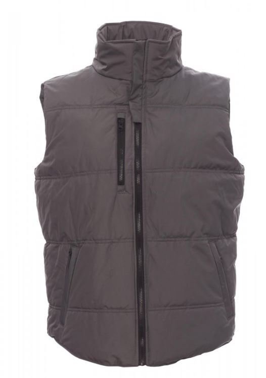 Gilet unisexe à fermeture éclair de 8 mm en plastique avec curseur en métal, deux poches latérales à fermeture éclair, une poche de poitrine. Intérieur: matelassé et en micropolaire à contraste.