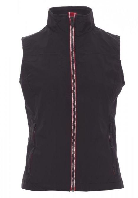 Gilet femme coupe ergonomique, à zip de 8 mm contrasté, deux poches extérieures avec zip couvert. Intérieur : non rembourré, à filet, une poche zippée pour smartphone avec prédisposition pour casque et câble, fermeture éclair sur la poitrine et dans le bas pour faciliter impressions et broderies.