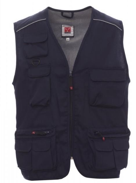 Gilet d'été, à fermeture éclair, composition multi-poches frontale avec un porte-badge réversible, passepoil réfléchissant sur les épaules et au dos, grande poche chasseur arrière, intérieur : doublure en DryTech, de couleur en contraste, ouverte pour faciliter impressions et broderies.