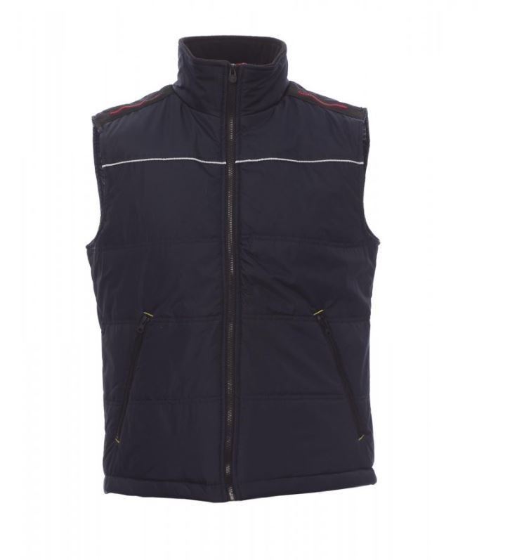Gilet unisexe à zip de 5 mm en plastique avec curseur en métal, arrière profilé, deux grandes poches extérieures zippées, passepoil réfléchissant sur la poitrine et au dos. Intérieur : matelassé et doublure haute densité, intérieur de col en polaire, une poche.