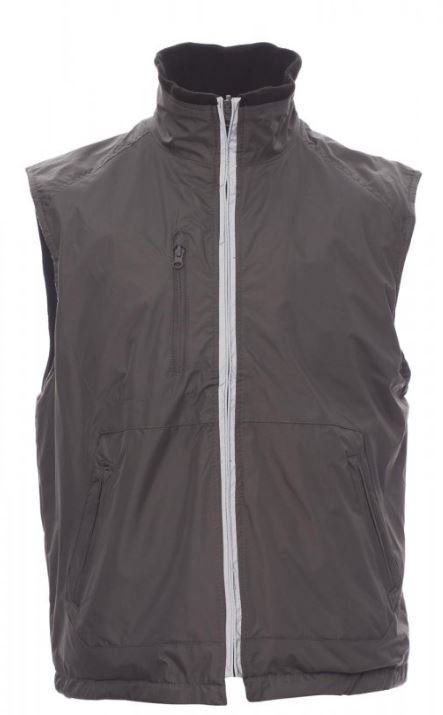 Gilet unisexe réversible à zip en plastique couvert avec profil réfléchissant, coulisse à la taille, trois poches extérieures. Intérieur : en polaire, col en bord-côte tricot, deux poches et zip sur la poitrine pour faciliter impressions et broderies.