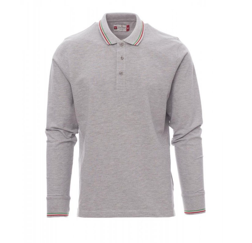 Polo unisexe à manches longues et 3 boutons assortis, col et poignets en bord côtes avec fin profil tricolore en contraste, fentes latérales, coutures du col couvertes, ruban de renfort latéral, renfort profilé sur encolure arrière