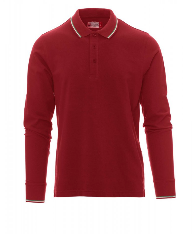 Polo unisexe à manches longues et 3 boutons assortis, col et poignets en bord côtes avec fin profil tricolore en contraste, fentes latérales, coutures du col couvertes, ruban de renfort latéral, renfort profilé sur encolure arrière