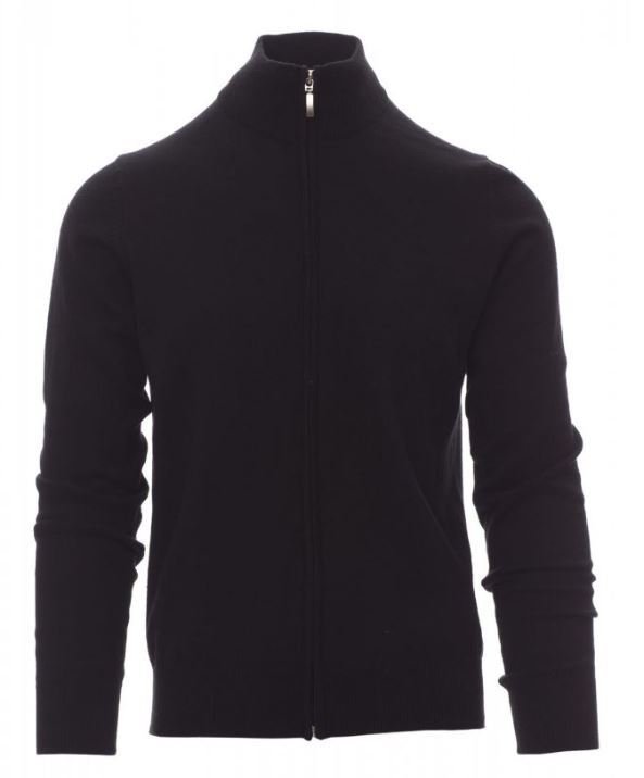 Pull unisexe à zip intégral, avec poignets et bordures inférieures en bord côtes fin, patchs aux coudes, rasage fin et tricot façonné sans coutures.
