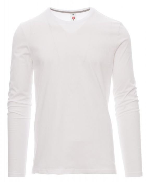Tee-shirt pour homme, encolure ras le cou et manches longues, col en bord côtes mixte spandex de 1,5 cm avec couture rabattue sur le devant, ruban de renfort d'épaule à épaule dans couleur en contraste sur le col, coutures stretch, couture latérale