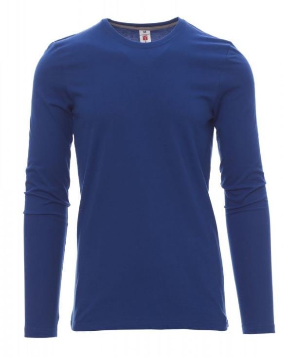 Tee-shirt pour homme, encolure ras le cou et manches longues, col en bord côtes mixte spandex de 1,5 cm avec couture rabattue sur le devant, ruban de renfort d'épaule à épaule dans couleur en contraste sur le col, coutures stretch, couture latérale