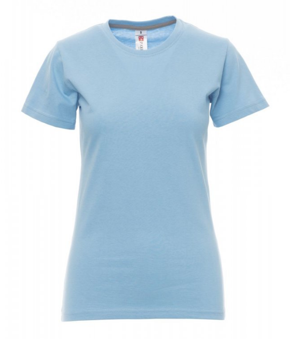 Tee-shirt cintré pour femme, encolure ras le cou et manches courtes, col en bord côtes mixte spandex de 1,5 cm avec couture rabattue sur le devant, ruban de renfort d'épaule à épaule dans couleur en contraste sur le col, coutures stretch, couture latérale