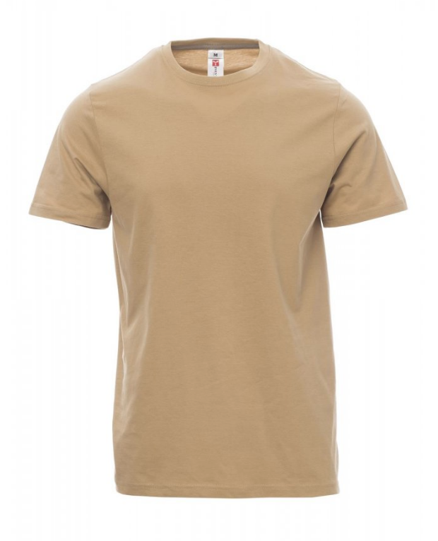 Tee-shirt pour homme, encolure ras le cou et manches courtes, col en bord côtes mixte spandex de 1,5 cm avec couture rabattue sur le devant, ruban de renfort d'épaule à épaule dans couleur en contraste sur le col, coutures stretch, structure tubulaire (couleur mimétique avec couture latérale)