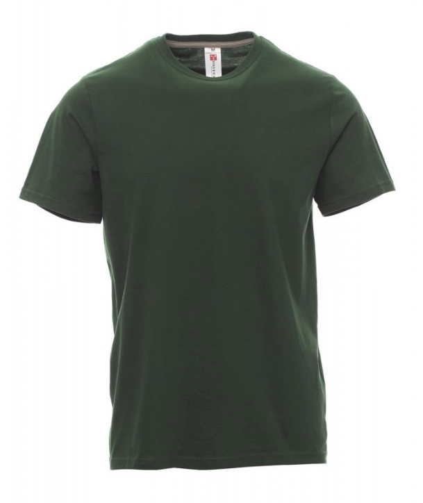 Tee-shirt pour homme, encolure ras le cou et manches courtes, col en bord côtes mixte spandex de 1,5 cm avec couture rabattue sur le devant, ruban de renfort d'épaule à épaule dans couleur en contraste sur le col, coutures stretch, structure tubulaire (couleur mimétique avec couture latérale)